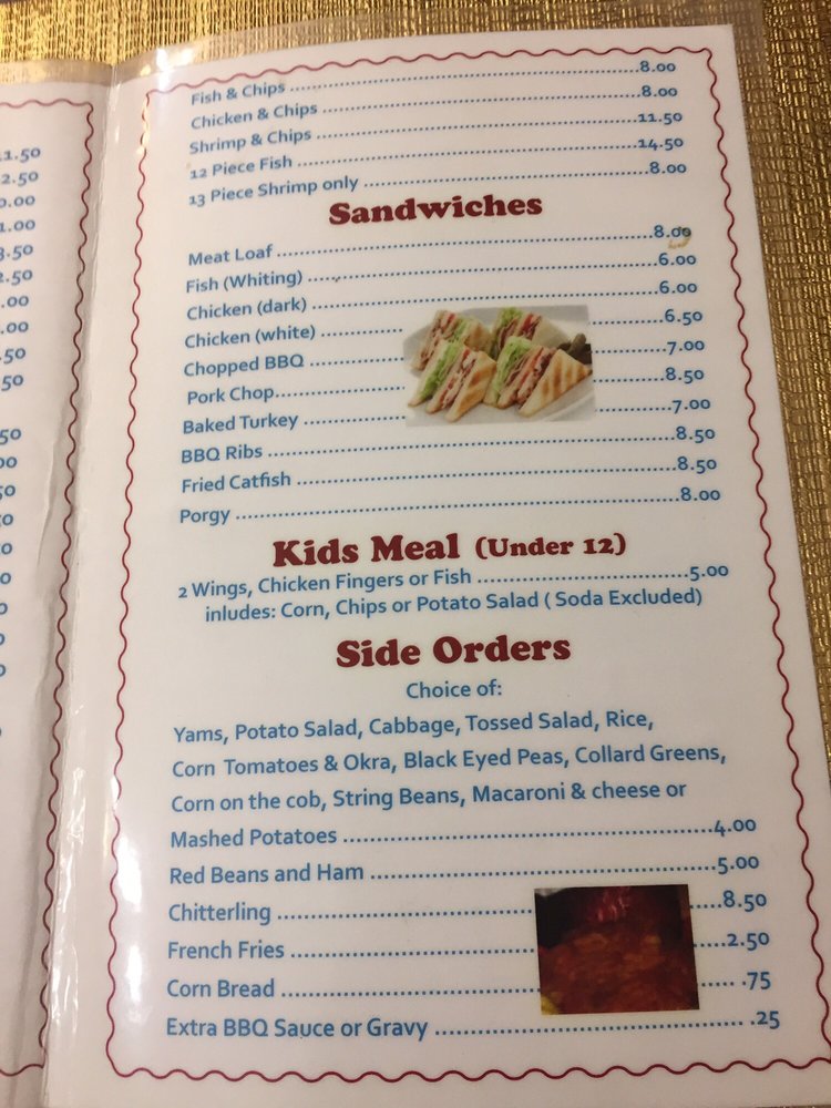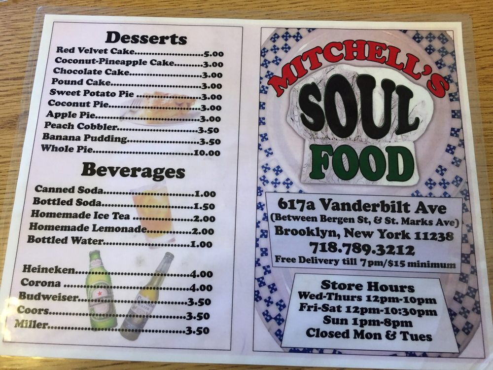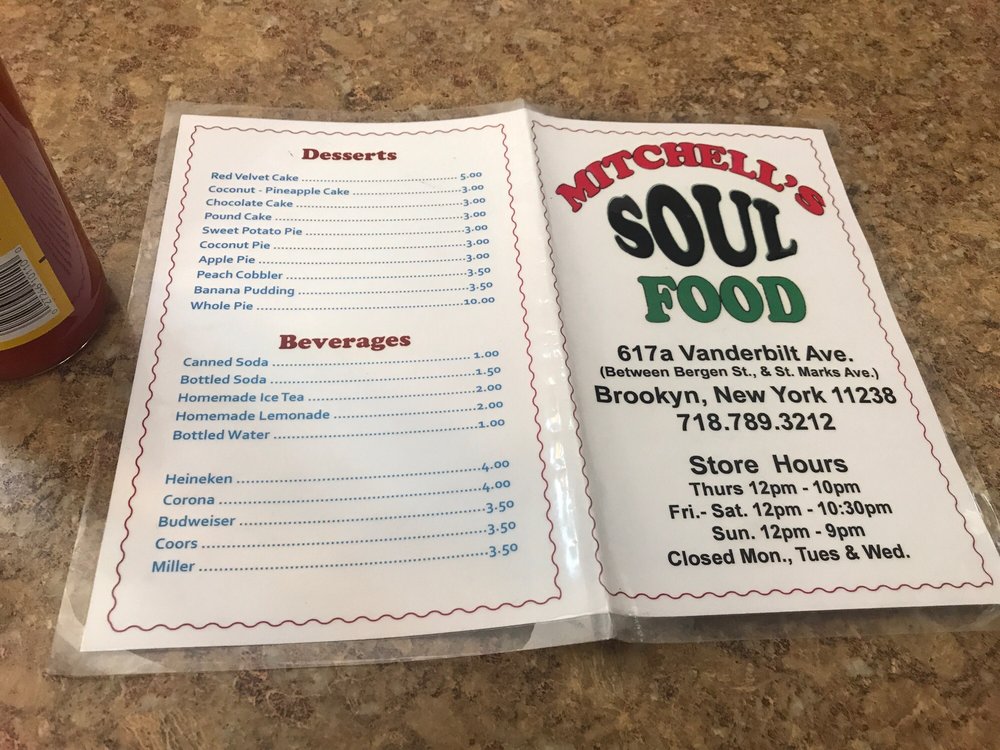 Introducing Mitchell's Soul Food, a southern soul food gem located at 617A Vanderbilt Ave in Brooklyn, NY. Offering a cozy homestyle atmosphere, this restaurant will make you feel like you're dining in your family's kitchen. The menu boasts delicious dishes such as perfectly crispy fried fish, flavorful chicken wings, smothered ribs, and chopped BBQ pork shoulder. Side dishes like collard greens, mac & cheese, yams, okra with tomatoes, and potato salad are all top-notch. Don't miss out on the banana crème pie or peach cobbler for dessert. With a variety of flavors and affordable prices, Mitchell's Soul Food is a must-visit spot for fans of authentic southern cuisine.